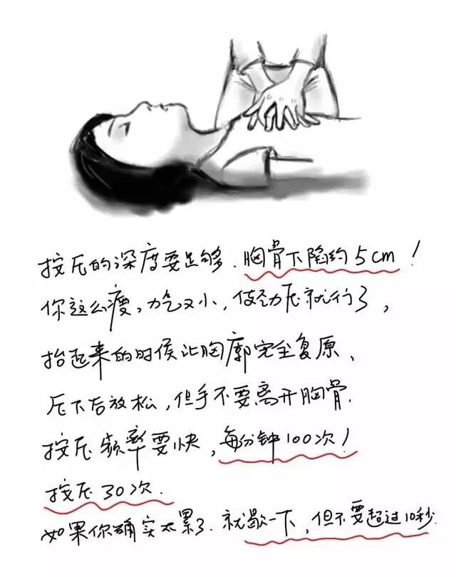 - 做胸外按压的时候,衣服要松,手臂要直,深度要够,频率要快;